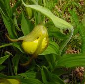 Yellow lady's slipper just emerging (Cypripedium pubescens)